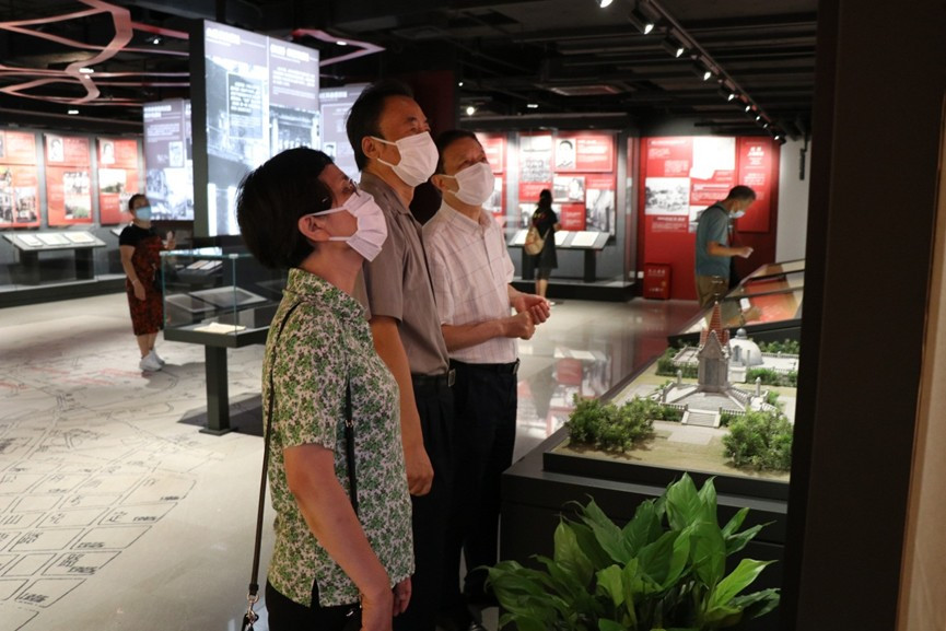 该馆以党史知识与文化内涵为血脉,还原了中共四大召开前后的历史场景。大家瞻仰了中共四大会址场景再现厅,并认真参观了由“时局与形势”、“筹备与召开”、“发展与高潮”三个部分组成的主展厅。庄晓玖会长、胡兰芳副会长等一行不时驻足,凝视历史照片,了解有关史实细节。丰富的手稿、珍藏的图片、形象的影像资料、逼真的情景再现,使大家进一步了解了中共四大召开的时代背景、主要成果和历史贡献。